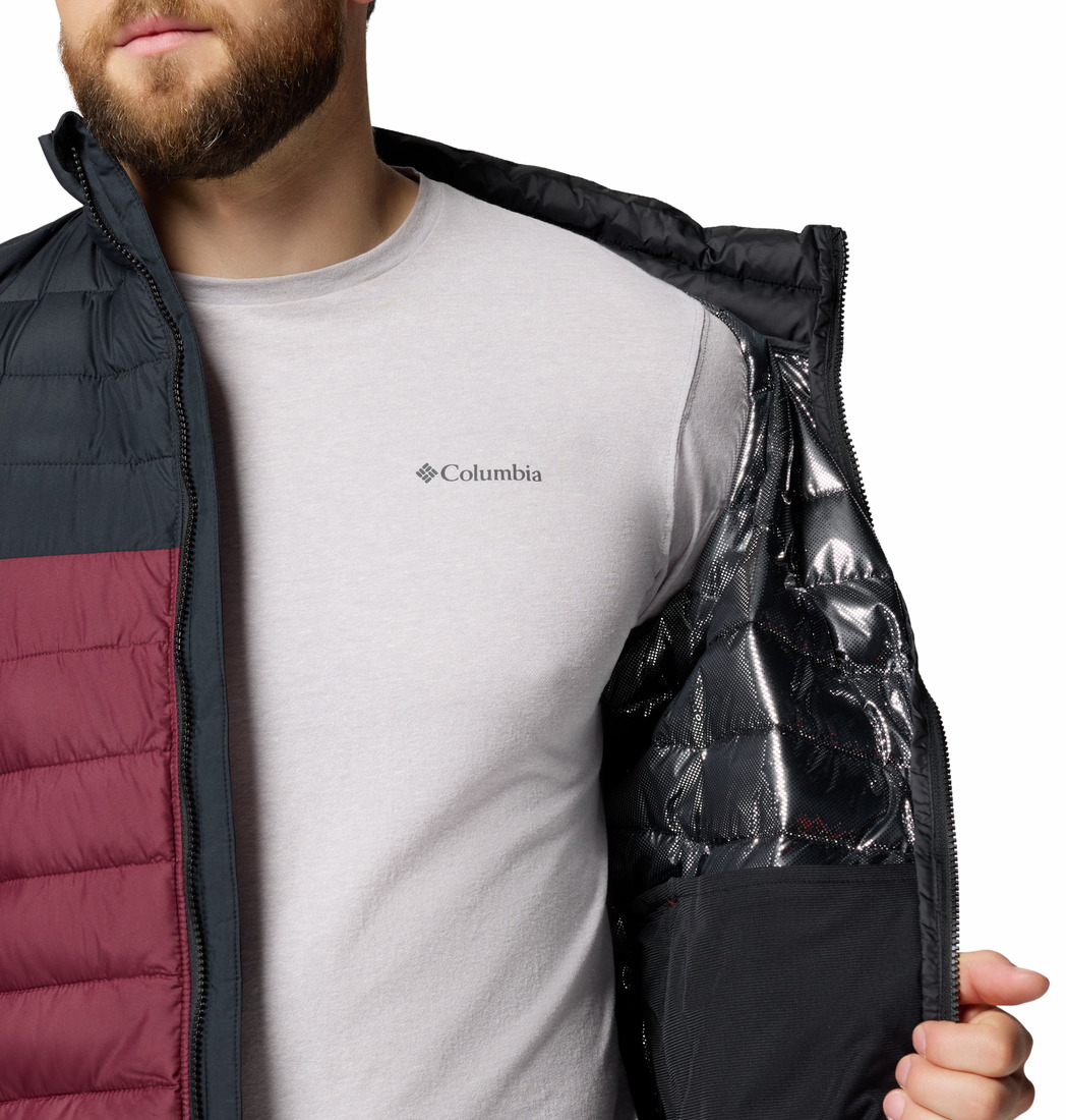 Μπουφάν Columbia Powder Lite™ Jacket. Ένα μπουφάν από ελαφριά υλικά που προσφέρει ιδανική ζεστασιά στο κορμό του σώματος. Πολύ άνετο όταν δραστηριοποιήστε σε κρύο περιβάλλον. Διαθέτει υψηλή τεχνολογία θέρμανσης χωρίς όμως να επιτρέπει υπερθέρμανση. Ιδανικό τόσο για την πόλη όσο και για την ύπαιθρο. Προστατεύει από το βροχερό καιρό, αφού έχει αδιαβροχοποιημένο ύφασμα, και το κρύο με τη τεχνολογία Omni-Heat®. Η φόδρα του τεχνολογίας Omni-Heat thermal reflective προσφέρει άνεση και ευχάριστη ζεστασιά. Διαθέτει χρήσιμη εσωτερική τσέπη για κινητό τηλέφωνο ή άλλα αντικείμενα η οποία κλείνει με φερμουάρ.