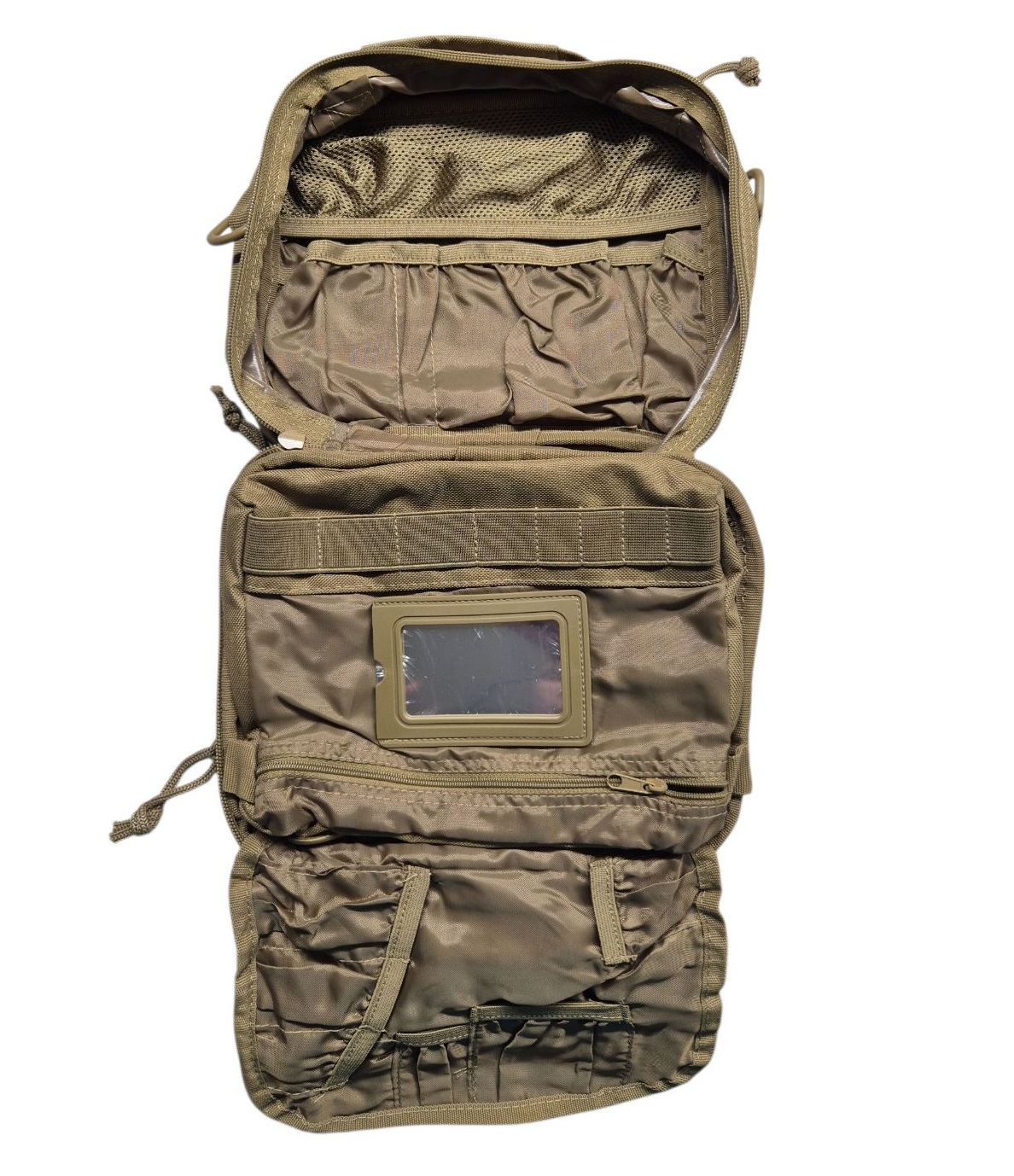 Διαθέτει ένα κυρίως χώρο που κλείνει με φερμουάρ. Θήκες μπροστά και πίσω, η μπροστινή με δυχτάκι αερισμού. Στο εσωτερικό διαθέτει θήκες οργάνωσης και καθρεφτάκι. Σύνθεση: Ανθεκτικό 600 denier PVC.